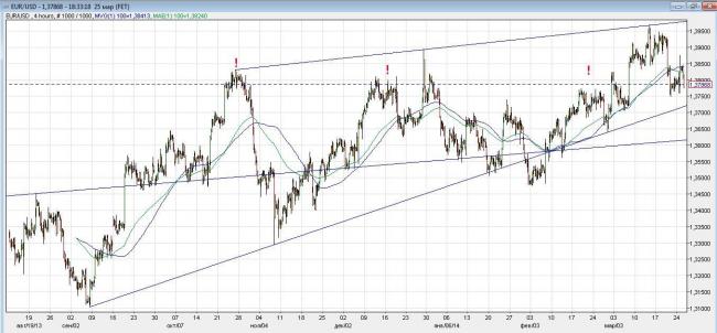 | Внутридневный технический анализ: EUR/USD в сужающемся треугольнике 1.3745-1.3820 |